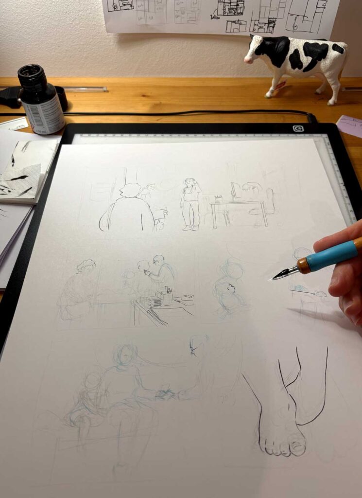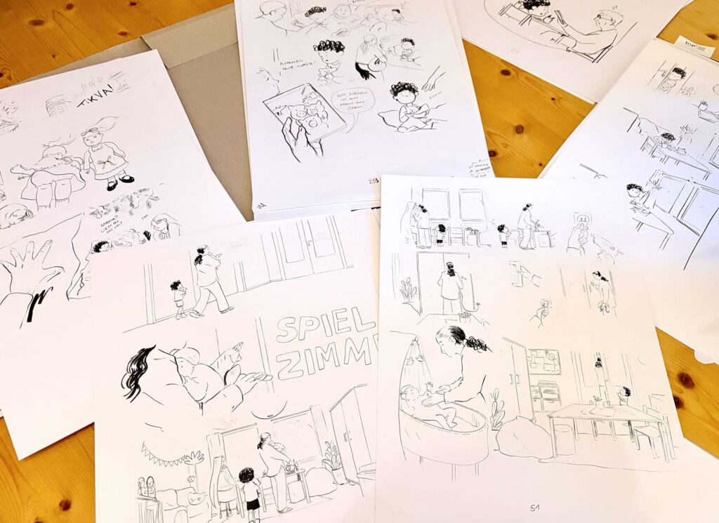 Haus aus Stein follows Tikva, six years old, and her mother – their escape from domestic violence and their arrival in a women’s shelter. A comic about the many faces of violence and what comes after leaving.