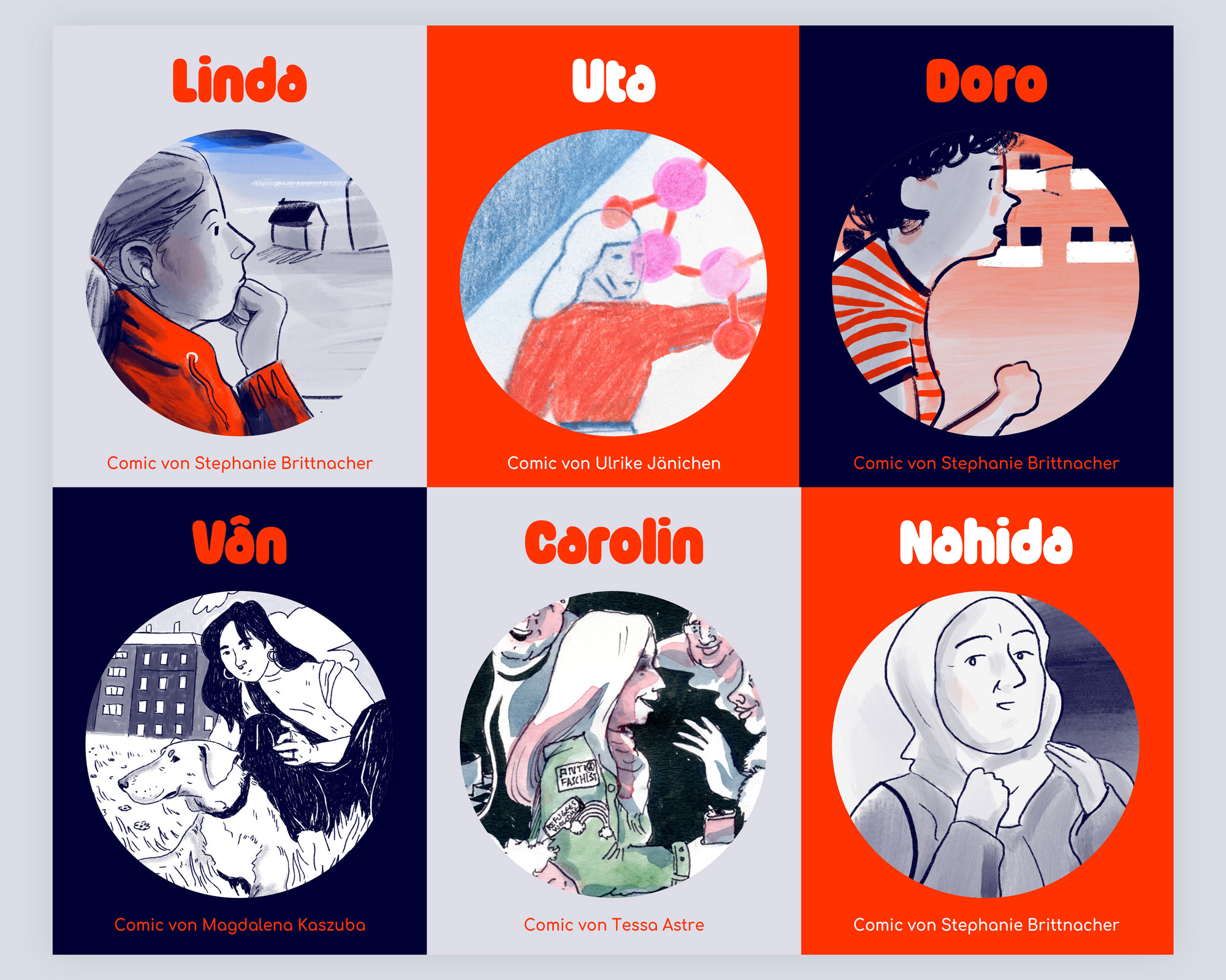 Die Comics basieren auf Gesprächen zwischen den Protagonistinnen und den beteiligten Künstler*innen Stephanie Brittnacher, Ulrike Jänichen, Tessa Astre und Magdalena Kaszuba und sind online auf rausauschemnitz.de und auf Instagram veröffentlicht.