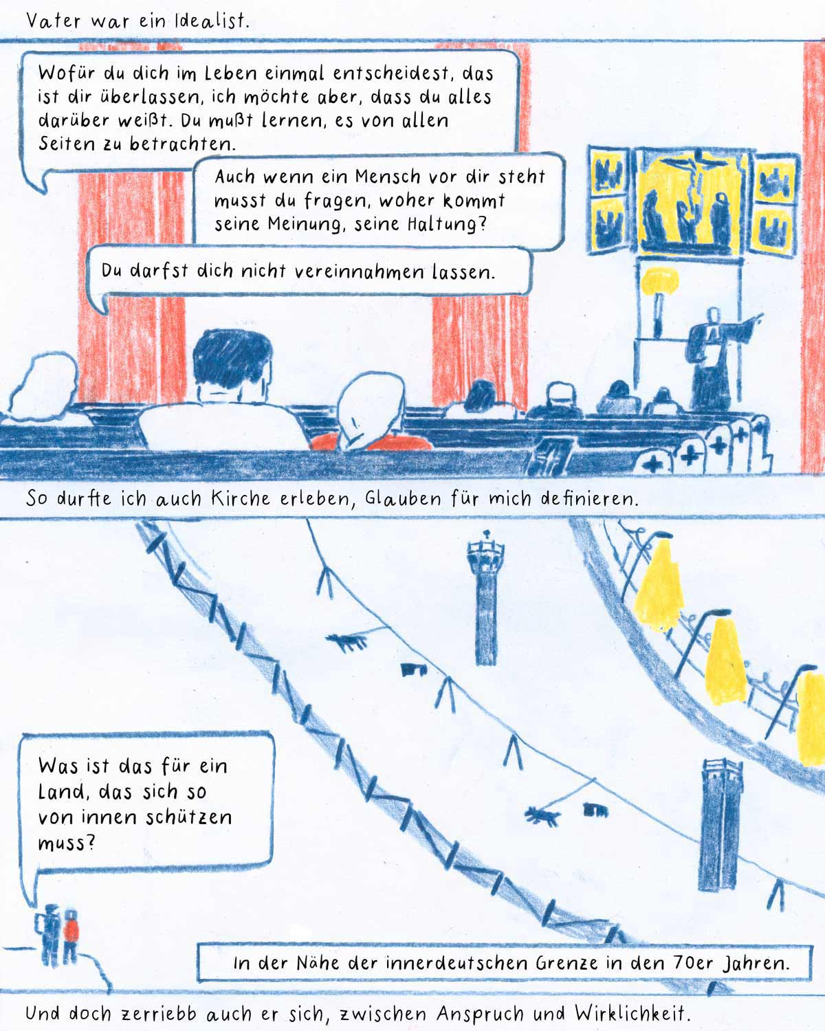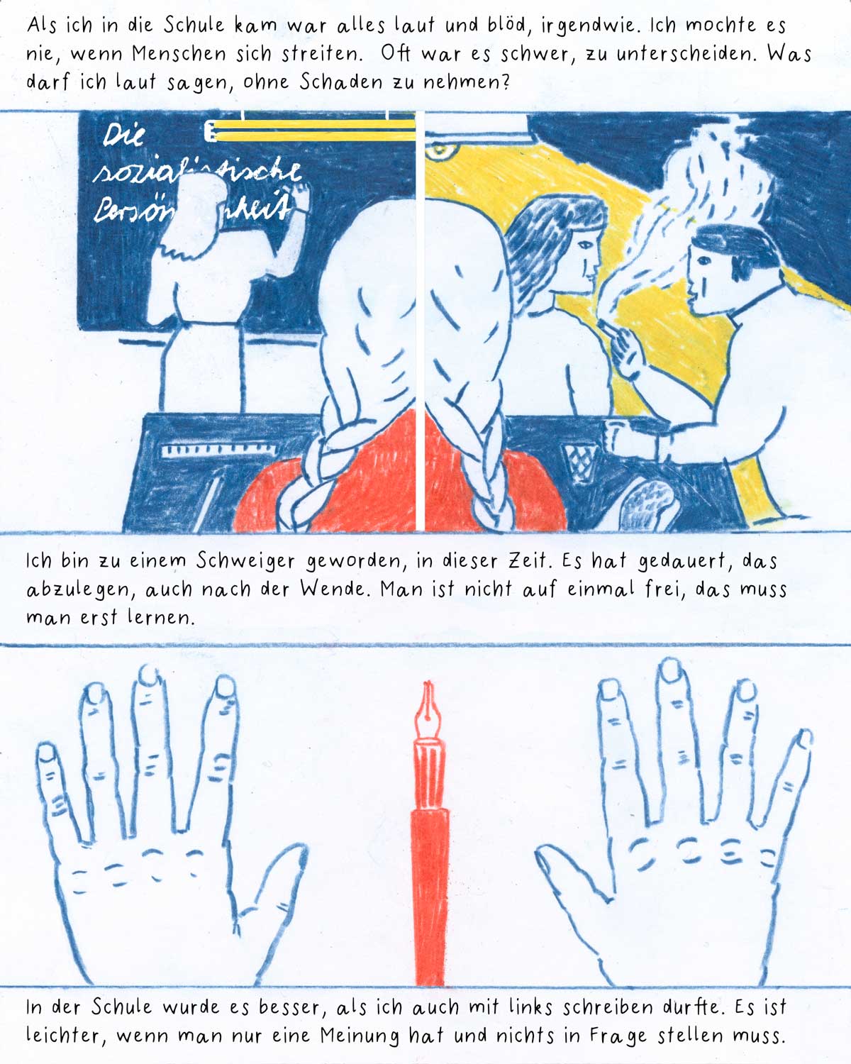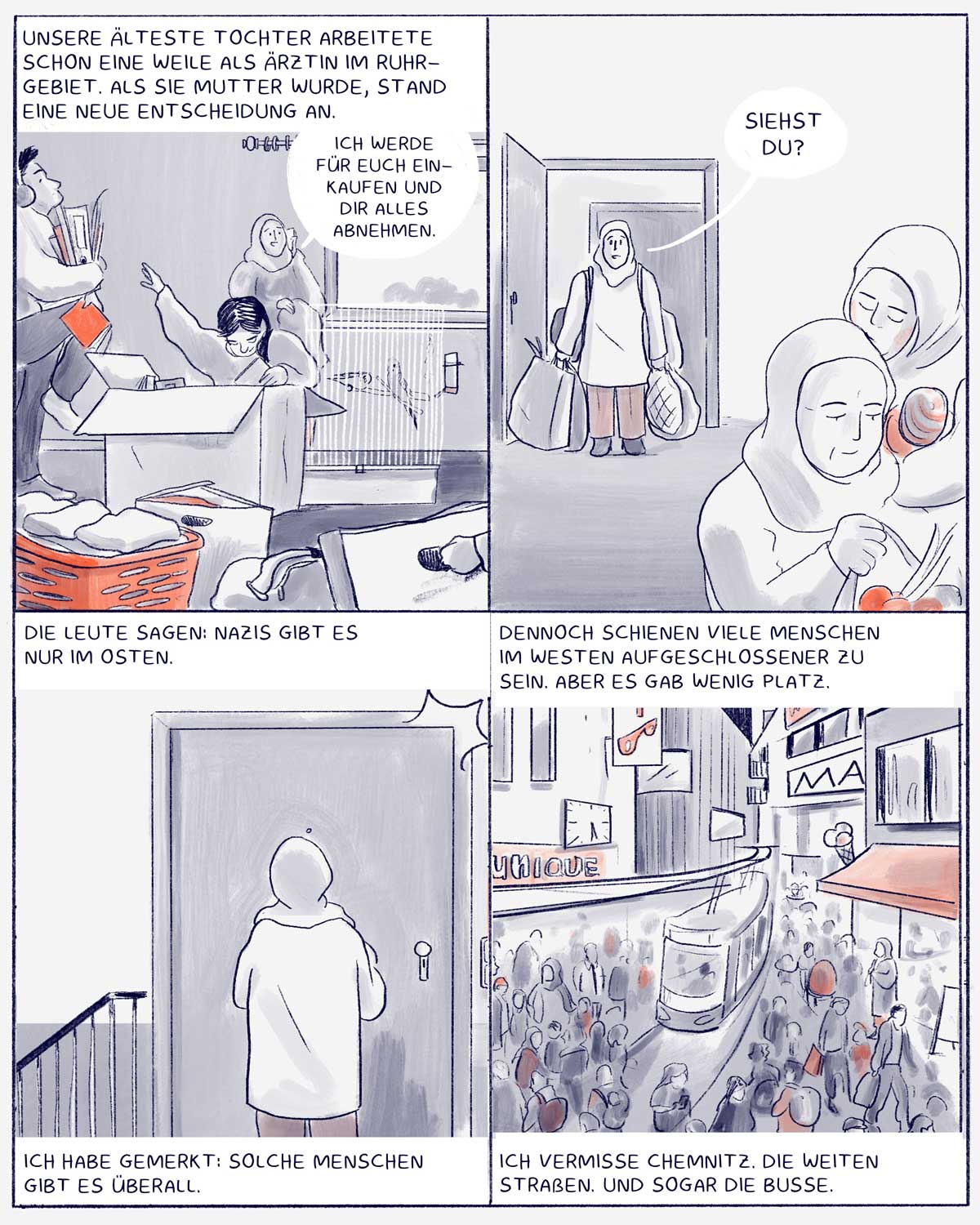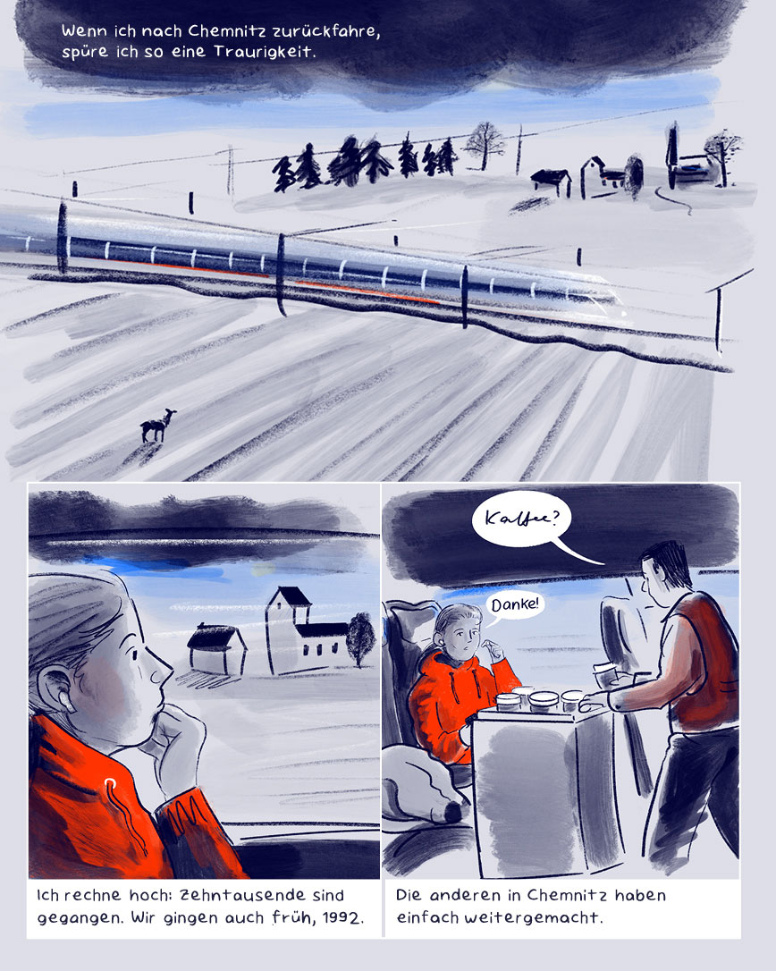 After the German Reunion, Linda moves with her mother from Chemnitz to Solingen – a formative step. In our comic, she reflects on what remains when you leave. And why it’s worth talking about the GDR – beyond clichés, in conversation.