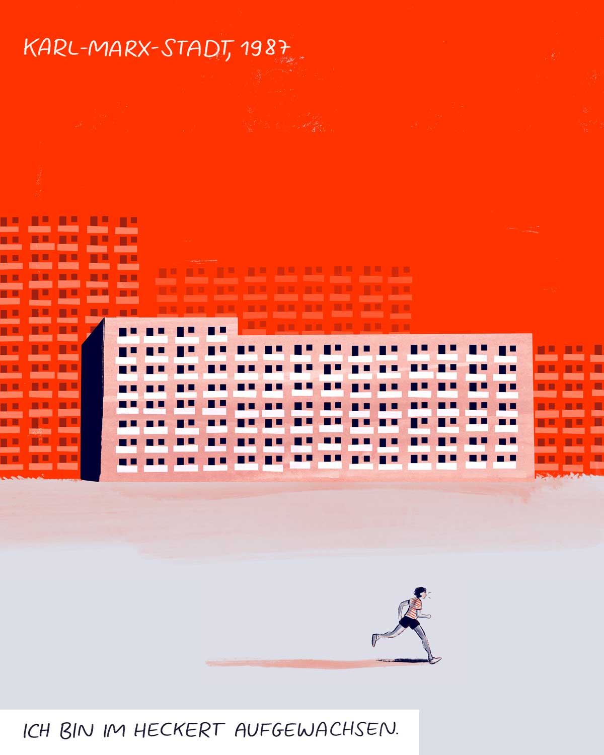 2015 zieht Carolin zunächst für ihr Kunststudium nach Dresden und später weiter nach Düsseldorf. Bei Besuchen in ihrer Heimatstadt beobachtet sie, wie sich Chemnitz verändert.